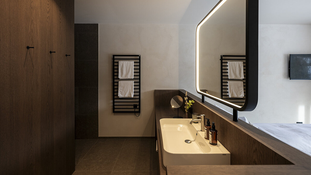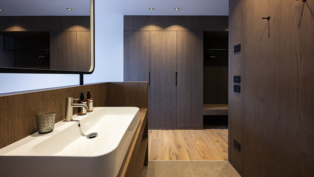 L'esclusività inizia con la progettazione. Nello showroom INNERHOFER di St. Lorenzen, i bagni sono stati progettati individualmente per combinare estetica e massimo comfort. Spaziose aree doccia, rubinetterie eleganti e materiali selezionati creano un'atmosfera di pace e relax.