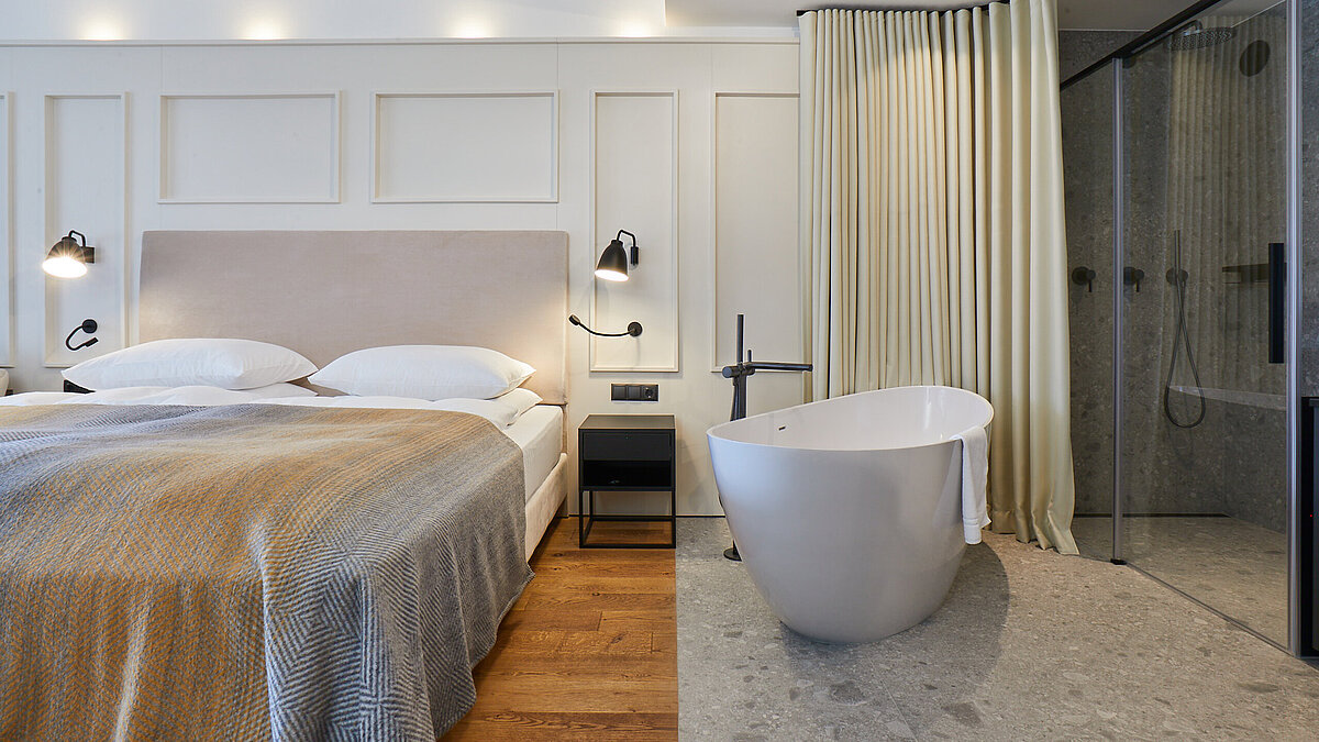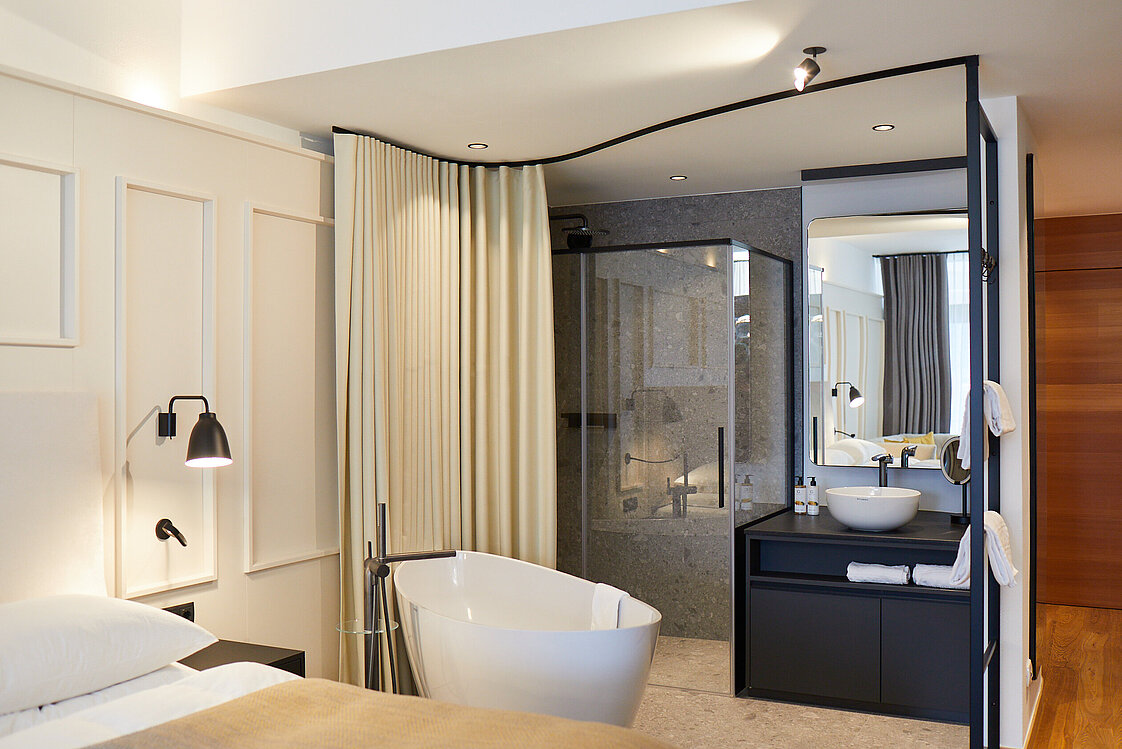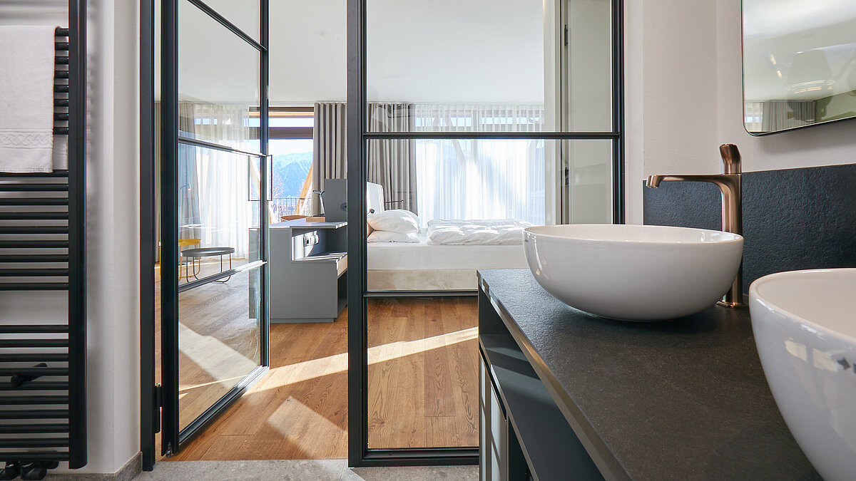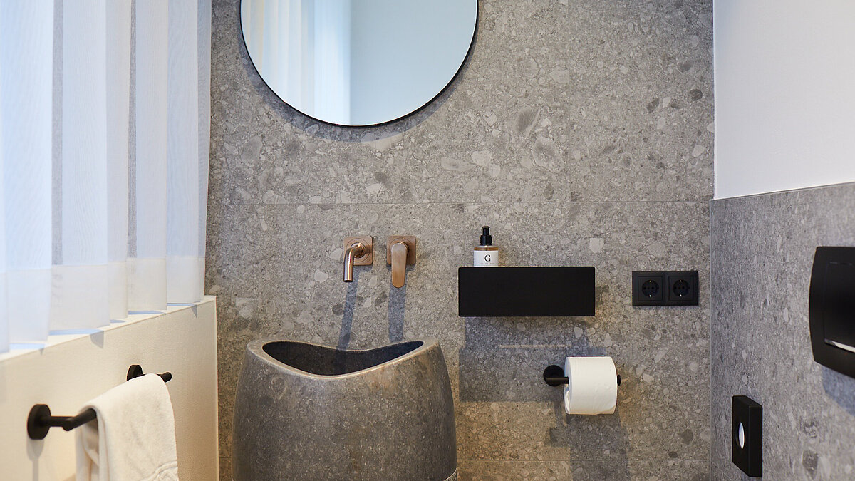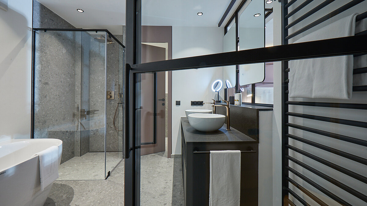 I bagni trasmettono una particolare sensazione di lusso e relax. Materiali di alta qualità, design sofisticato e un concetto cromatico coordinato creano un'atmosfera inconfondibile.