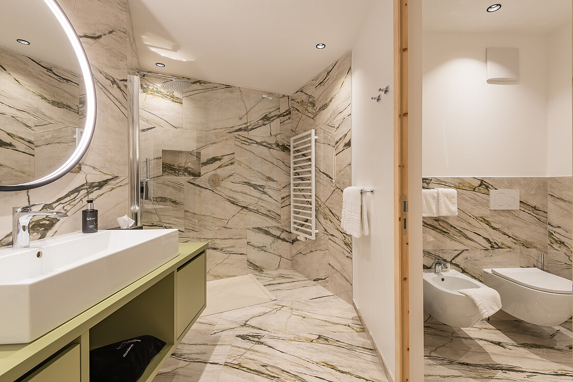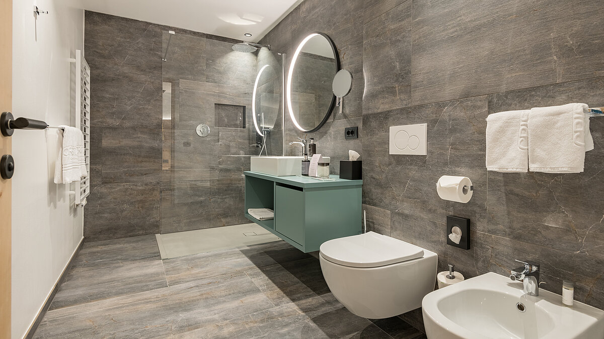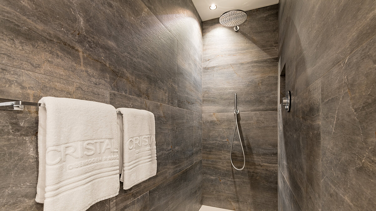 Particolare attenzione è stata dedicata anche ai nuovi bagni. Sono stati dotati di tecnologie all'avanguardia e materiali di lusso. Vasche spaziose, piastrelle pregiate e docce conferiscono ai bagni un tocco di benessere. Alcune suite sono dotate di saune private o vasche da bagno autoportanti con vista panoramica che promettono il massimo relax. I colori armoniosi e l'illuminazione indiretta aumentano il senso di benessere.