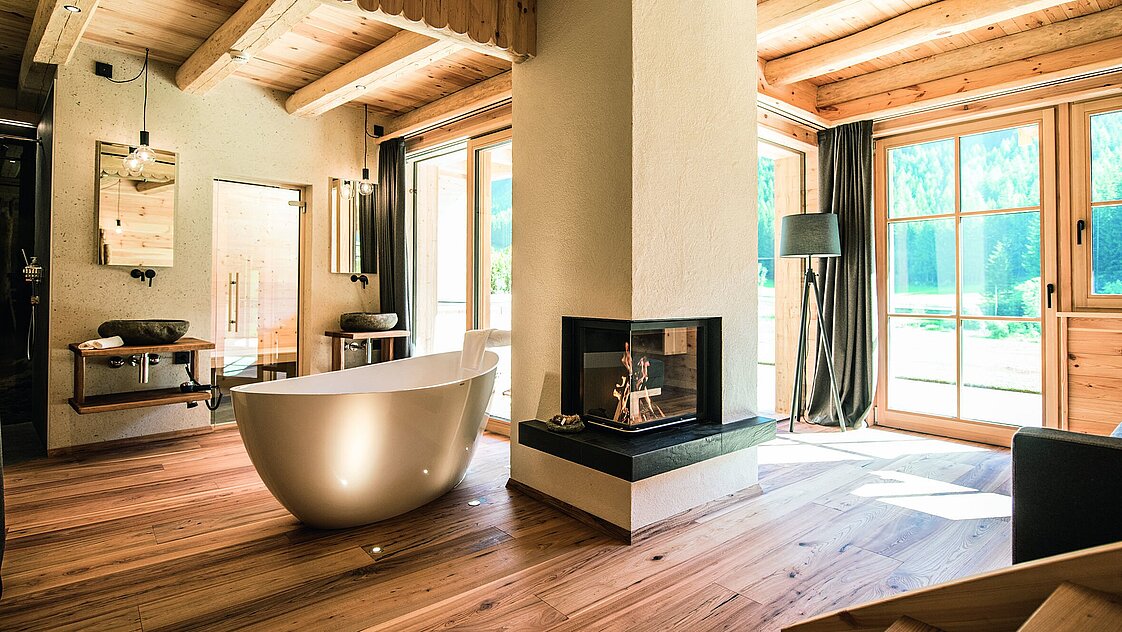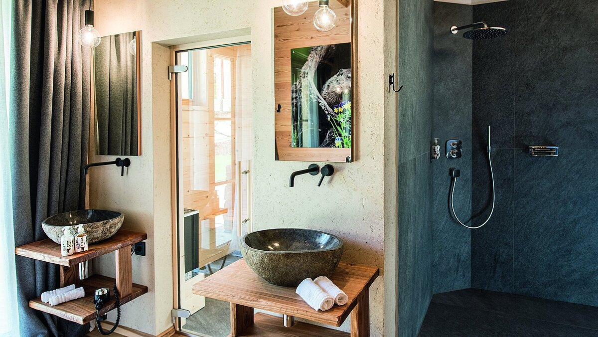 La combinazione di vasche da bagno autoportanti, lavabi di alta qualità e WC eleganti crea un equilibrio perfetto tra tradizione alpina e design moderno in ogni bagno. Un punto di forza assoluto: i lavabi in pietra nelle aree benessere private degli chalet - pezzi davvero unici che non sono solo funzionali ma anche un'esperienza visiva.