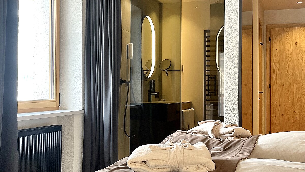 L'area benessere e le aree comuni sono state ridisegnate qualche anno fa. Ora le camere sono state completate. 37 camere risplendono di un nuovo splendore. Dal moderno al rustico, dal comfort al lusso. Le camere e i bagni sono stati armonizzati. Ogni singolo bagno si fonde armoniosamente con il concetto della rispettiva camera.