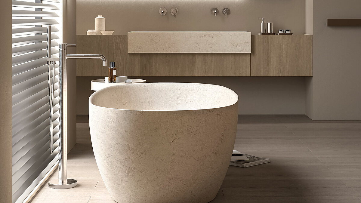 Al centro della gamma ci sono eleganti lavabi, disponibili come lavabi singoli, lavabi doppi o soluzioni su misura. Con i loro bordi netti e le proporzioni armoniose, conferiscono tranquillità e struttura al bagno. La gamma è completata da vasche da bagno freestanding e a filo parete dal carattere scultoreo, che si integrano perfettamente in qualsiasi architettura: moderne, resistenti, funzionali.