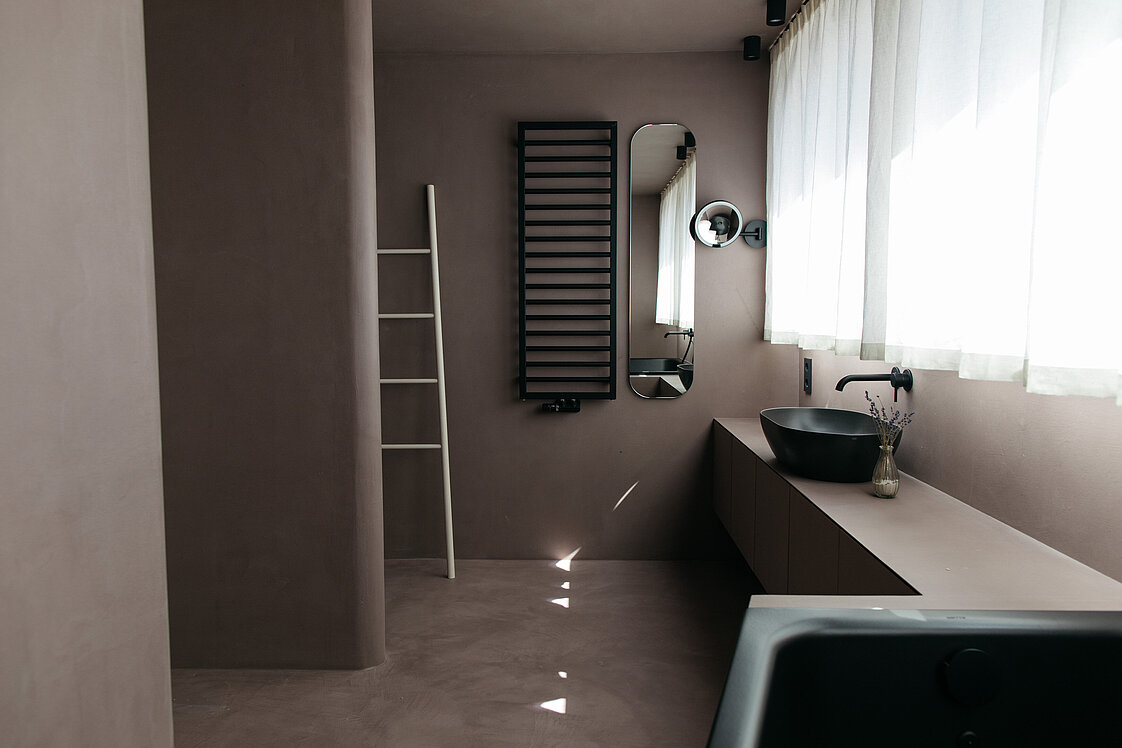 Das Design, purstisch und warm. Die Räume aus hochwertigen, lokalen Materialien. Die Lebensmittel kommen vom eigenen Hof, lokalen Produzenten und Bauern des Vertrauens. Familie Mühlmann legt Wert auf Authentizität – in allen Bereichen.