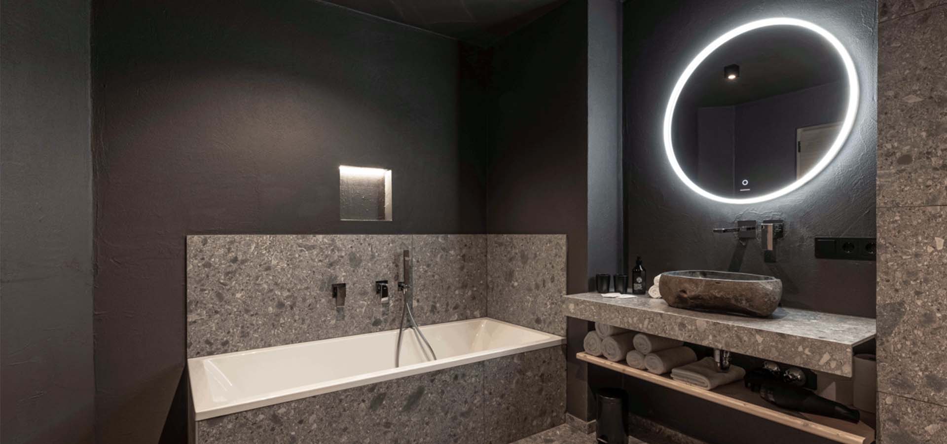 Naturstein-Wanne: Naturstein verleiht dem Badezimmer Exklusivität. Jede Wanne ist ein Unikat. Gleichzeitig sind die Oberflächen offenporig – und daher empfindlich gegenüber Säuren und aggressiven Mitteln.