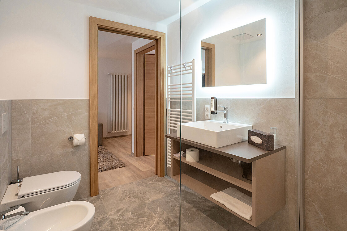 Im traditionsreichen Parkhotel zur Linde in Schlanders durften die Bäder mit Produkten von INNERHOFER neu gestaltet werden. Ziel war es, die Räume in das warme, natürliche Ambiente des Hauses einzubetten und eine Atmosphäre zu schaffen, die Ruhe und Komfort vermittelt.