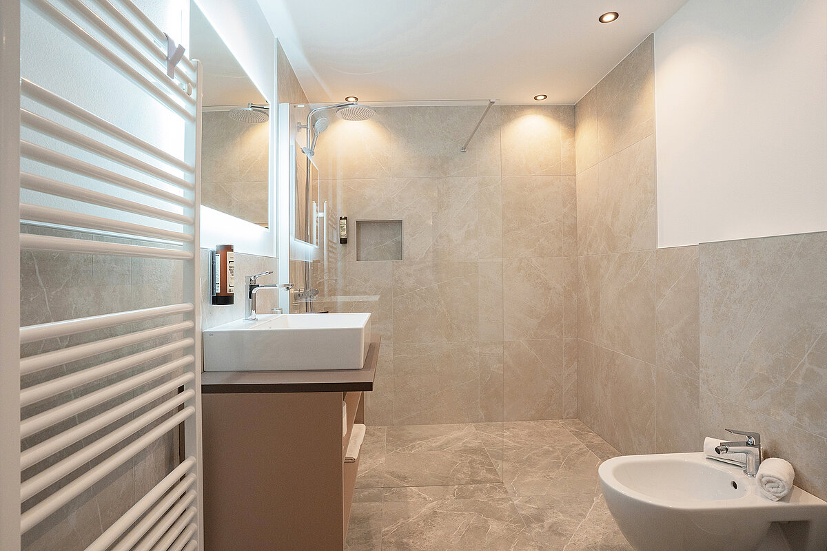 INNERHOFER begleitete das Projekt von der Beratung bis zur Lieferung und trug so dazu bei, die Bäder des Parkhotel zur Linde zu einem harmonischen Teil des Gesamterlebnisses werden zu lassen.