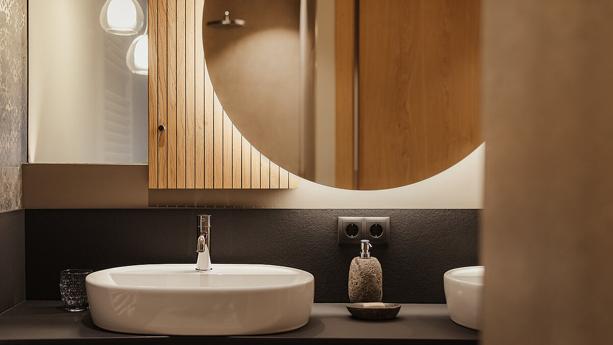 Die Sanitärlösungen überzeugen durch präzise Formgebung, hochwertige Materialien und eine ruhige, elegante Wirkung. Die Jacuzzi-Wannen setzen dabei besondere Akzente: leistungsstark, komfortabel und perfekt integriert – sowohl in den privaten Suiten als auch im gemeinschaftlichen Wellnessbereich.