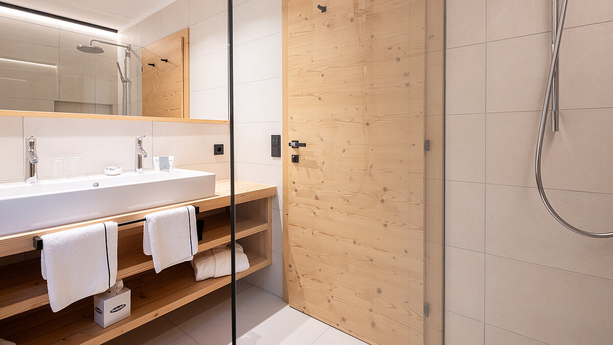 Nun erstrahlt das Hotel in neuem Glanz. Besonderer Wert wurde dabei auch auf die Zimmer und Badezimmer gelegt. Ziel des Umbaus war es, den Gästen noch mehr Komfort und Exklusivität zu bieten, ohne dabei den Bezug zur Natur aus den Augen zu verlieren.