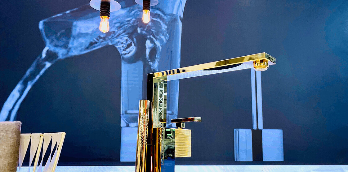 Nicht weniger spektakulär präsentierte sich Falper mit der Kollektion Controstampo. Sie umfasst neben der freistehenden Wanne auch ein Waschbecken aus Cristalplant®. Cristalplant® biobased ist ein Verbundmaterial mit einem niedrigen Prozentsatz an Polymer, Polyester und Acryl, sowie mit einem hohen Prozentsatz an natürlichen Mineralstoffen. Zu 100 % recycelbar und feuerhemmend.